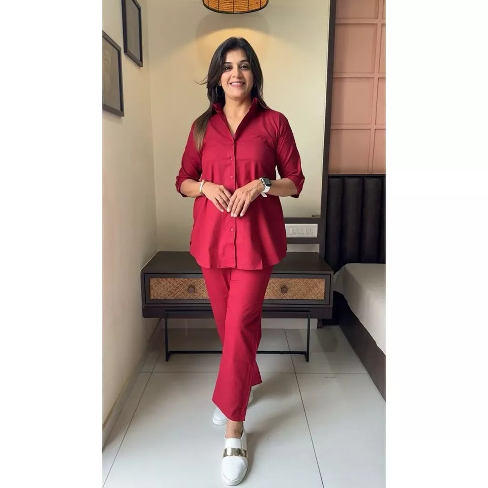 Effortlessly elevate your wardrobe with our Classic Maroon Co-ord Set. This sleek and versatile set includes a classic maroon top and coordinating bottoms, perfect for any occasion. Crafted with high-quality fabric and expert design, this set is essential for any fashion-forward individual.