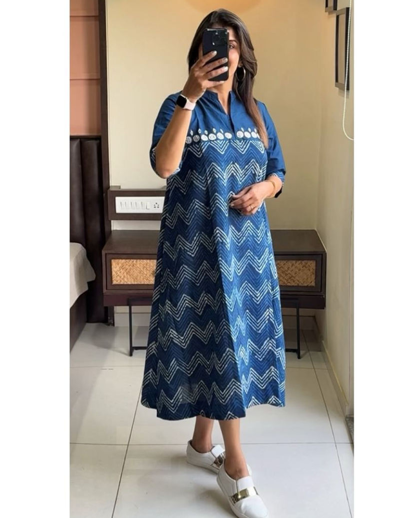 New Beautiful  cotton Zig Zag middi Gown dress