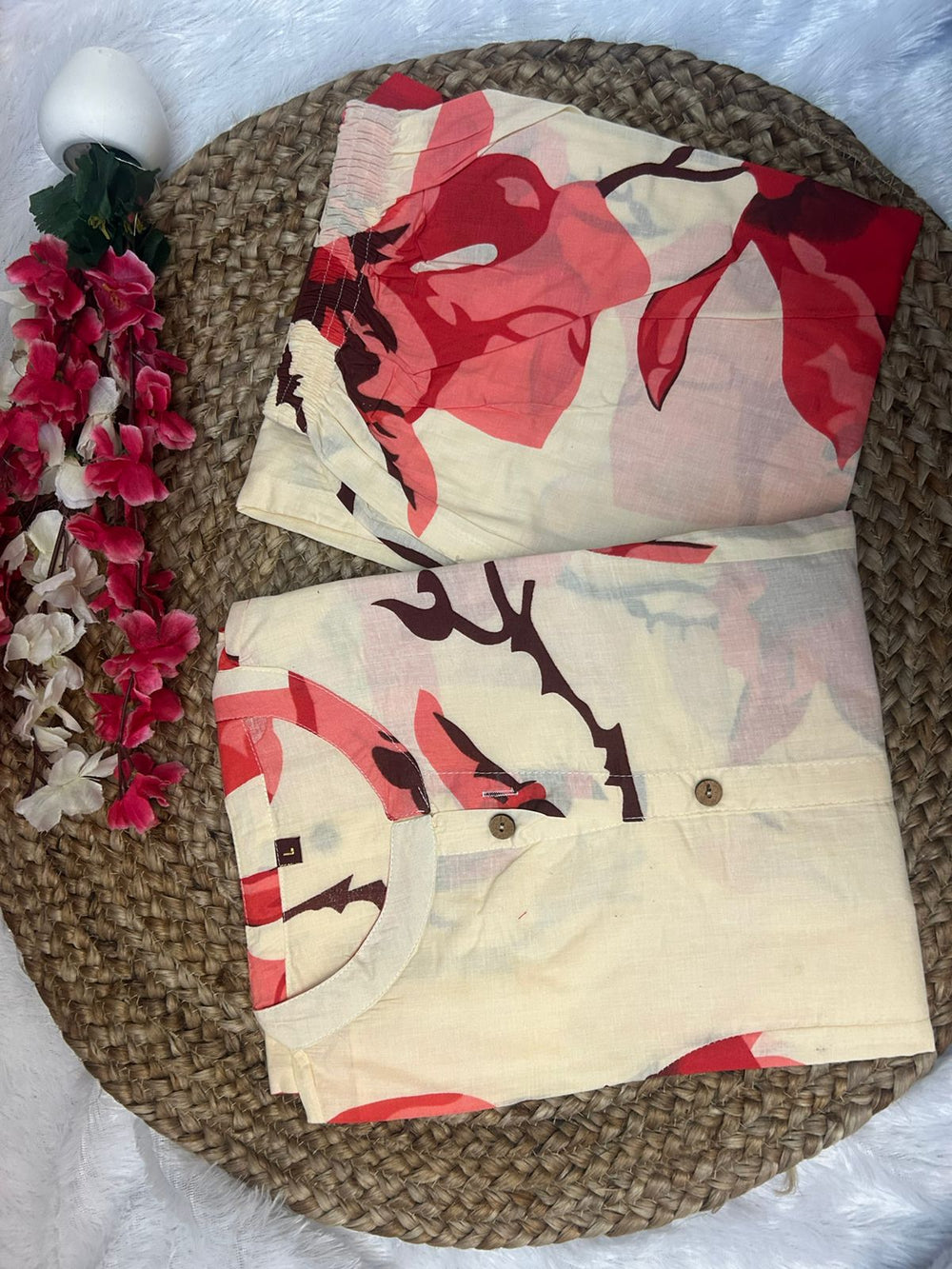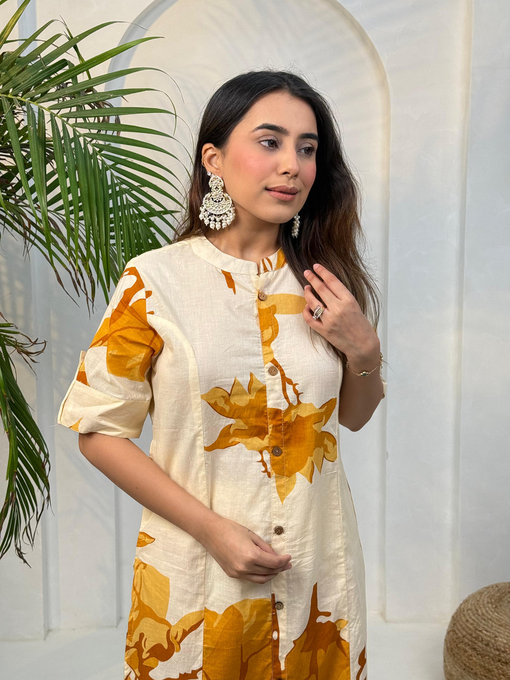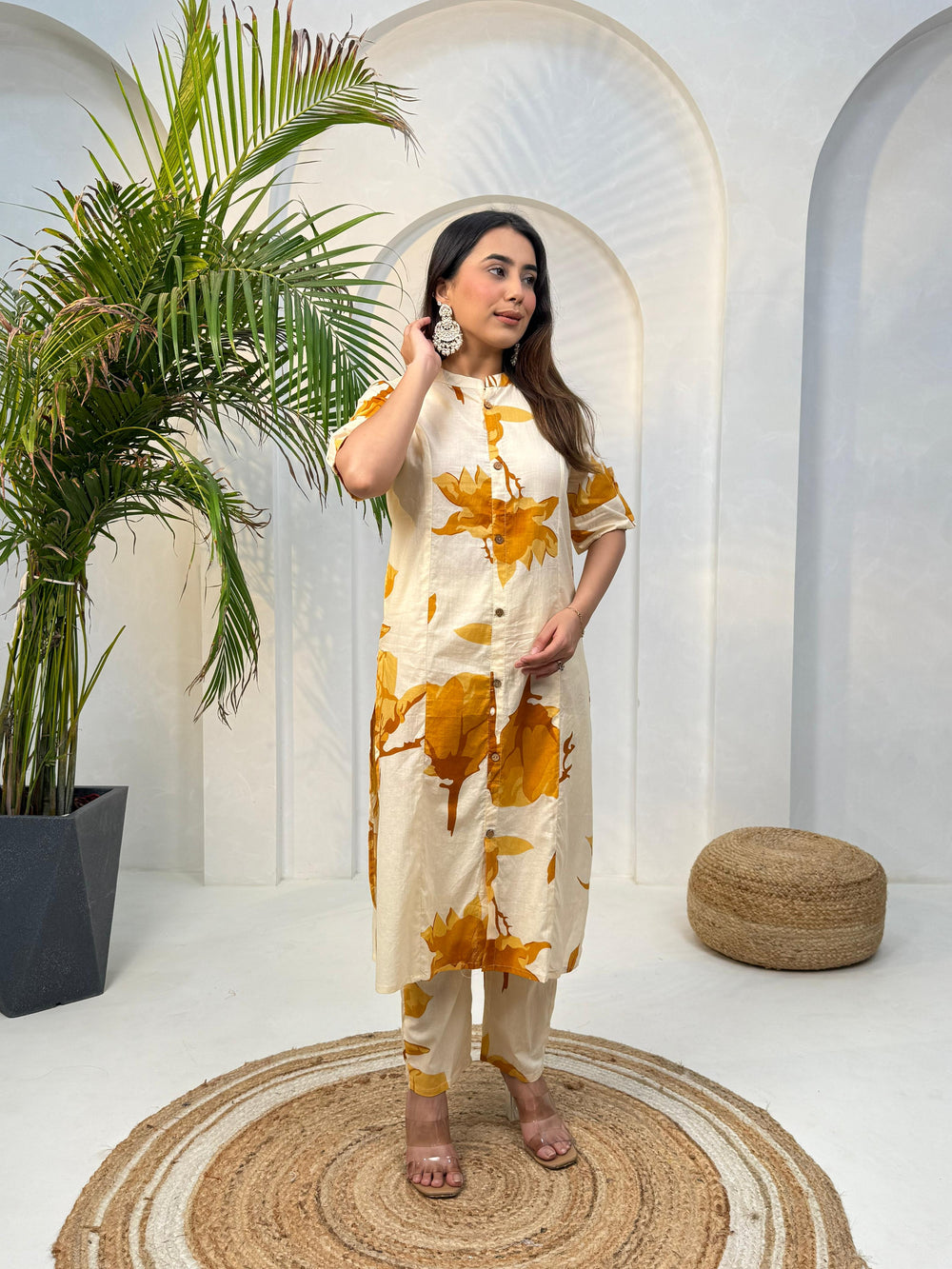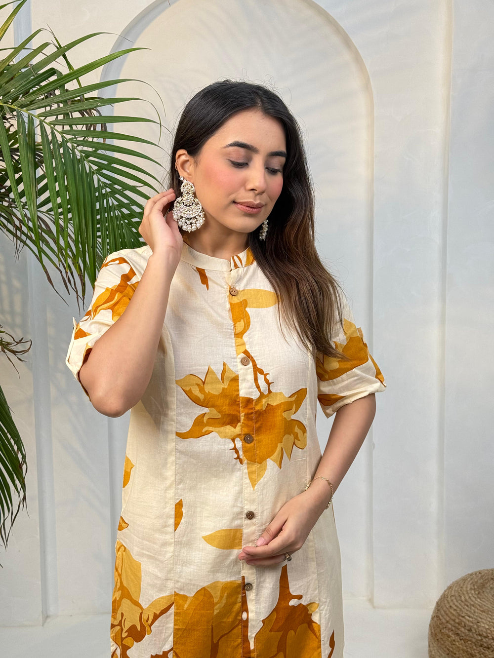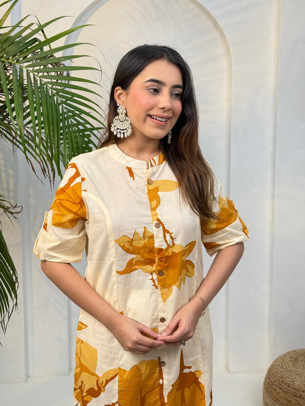 Elevate your wardrobe with this Cream & Mustard Floral Printed Co-Ord Set, expertly designed for a harmonious blend of comfort and style. The delicate floral print in soothing cream and vibrant mustard tones offers a refined aesthetic suitable for various occasions. Crafted to provide a flattering fit, this coordinated set ensures effortless elegance while maintaining all-day comfort. Perfect for those seeking a polished yet relaxed look, it pairs seamlessly with both casual and dressier accessories.