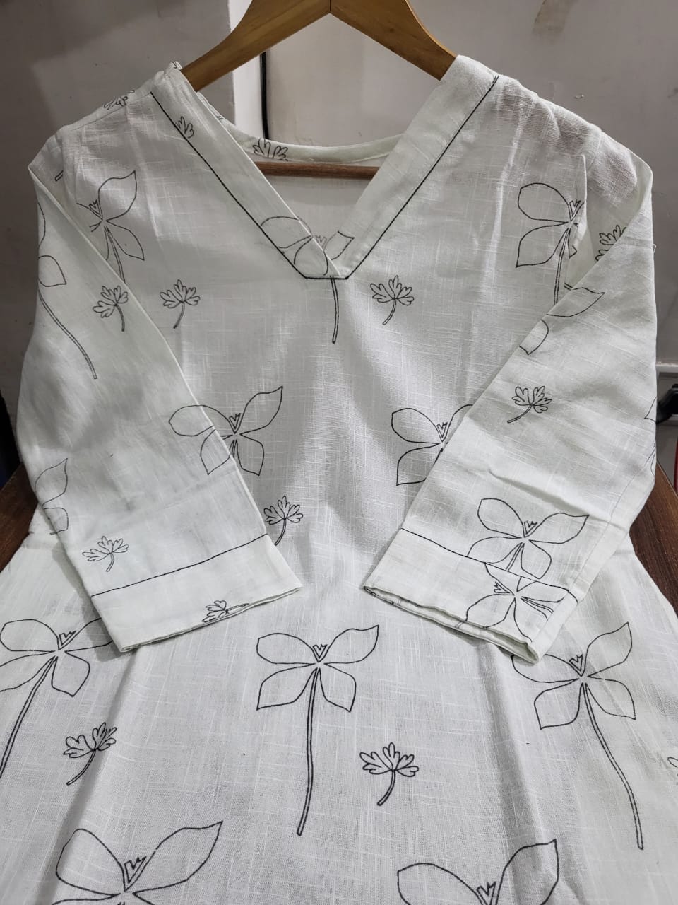 Crafted from high-quality Dabu Cotton Slub, this White Kurta Set exudes elegance and comfort. Its intricate design reflects expert craftsmanship, making it a timeless addition to any wardrobe. Elevated with its breathable fabric, this Kurta Set is perfect for any occasion.