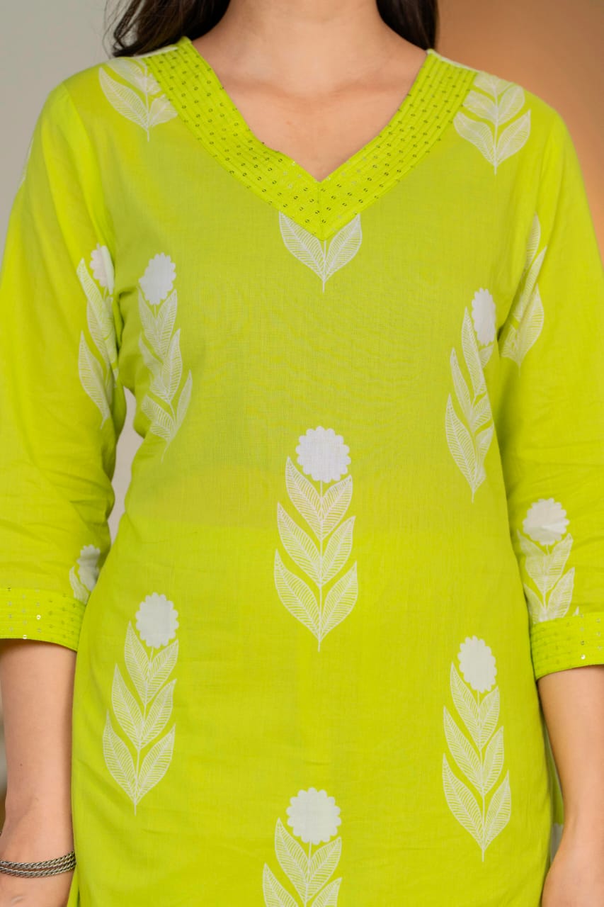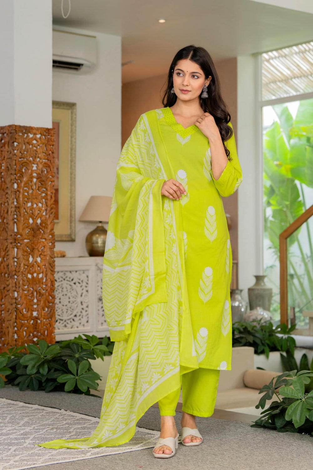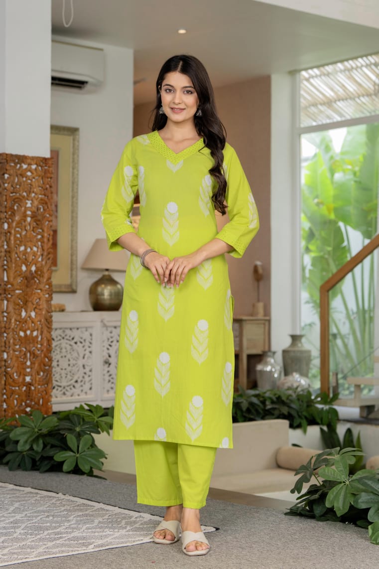 This Elegant Lime Yellow Cotton Suit Set combines vibrant color with breathable cotton fabric, offering comfort and style for any occasion. Its lightweight material ensures all-day wearability, while the bright lime yellow hue adds a fresh, sophisticated touch. Perfect for those seeking a balance of elegance and comfort in their wardrobe.