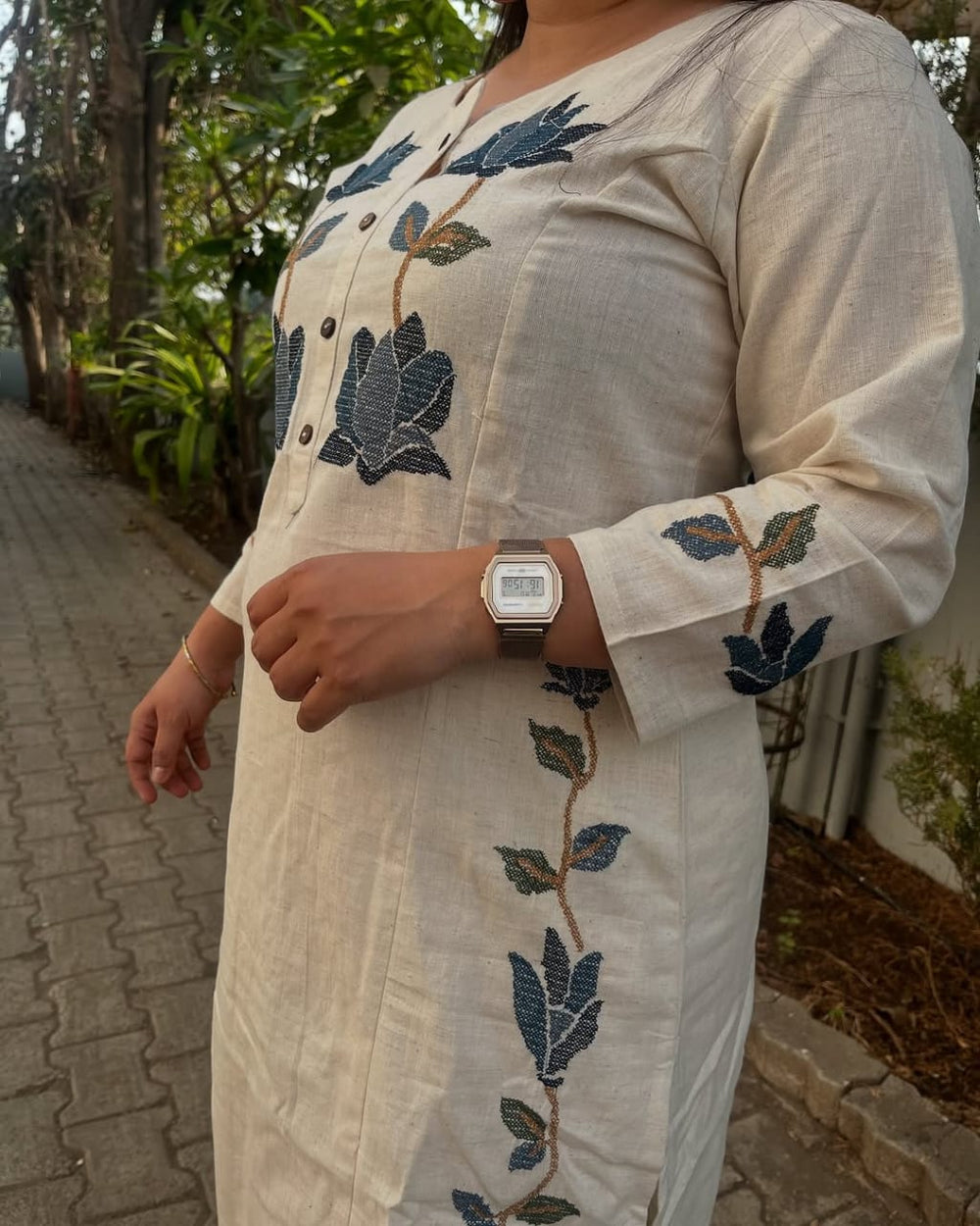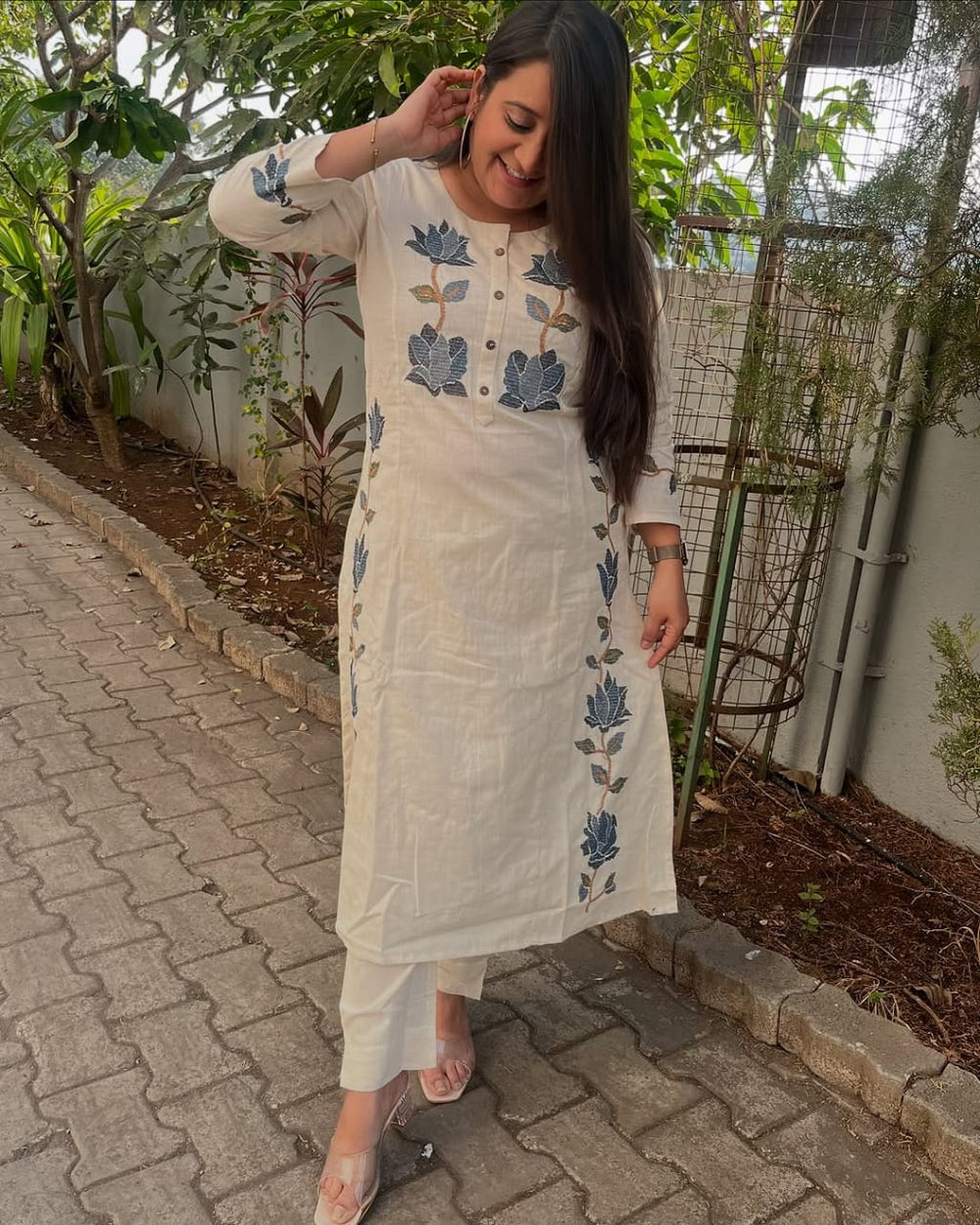 This Floral Embroidered Cotton Flex Co-Ord Set is expertly designed with intricate floral embroidery on a comfortable cotton flex material. With its versatile co-ord style, this set offers both fashion and function for any occasion. Elevate your wardrobe with this timeless and stylish piece.