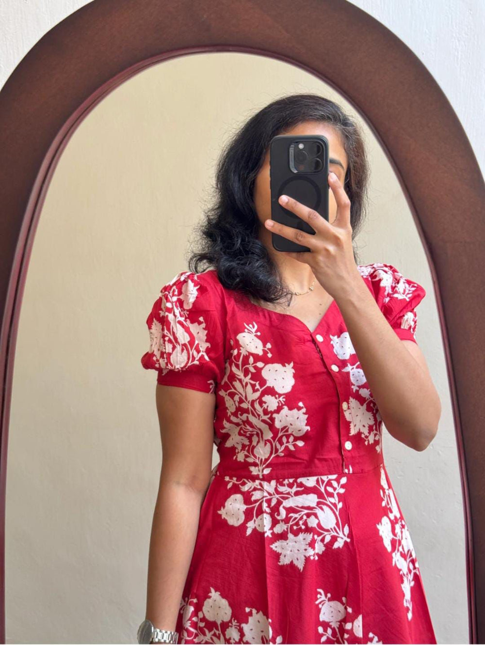 Experience the perfect harmony of elegance and style with our Red Blooms Floral Midi Dress. This dress features a stunning red floral pattern that will make you stand out in any occasion. Made with high-quality materials, it offers both comfort and fashion, making it a must-have in your wardrobe.